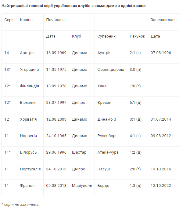 Востаннє українці не забивали французам 8 грудня 2015 року, коли «Шахтар» у груповому турнірі Ліги чемпіонів поступився у гостях ПСЖ - 0:2. До речі, більш тривалі гольові серії наші колективи мали лише з командами із п'яти країн - Австрії, Угорщини, Хорватії, Вірменії та Фінляндії.
