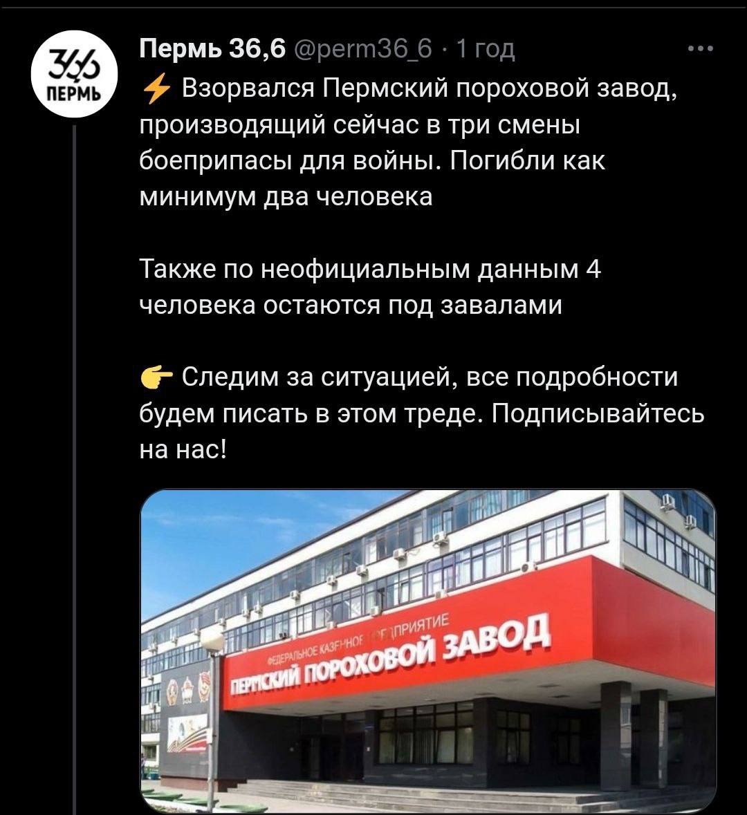 У Пермі вибухнув пороховий завод з виробництва боєприпасів для війни з Україною.