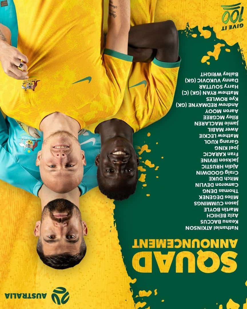 Збірна Австралії оригінально представила список гравців, заявлених на ЧС-2022, опублікувавши його догори ногами.