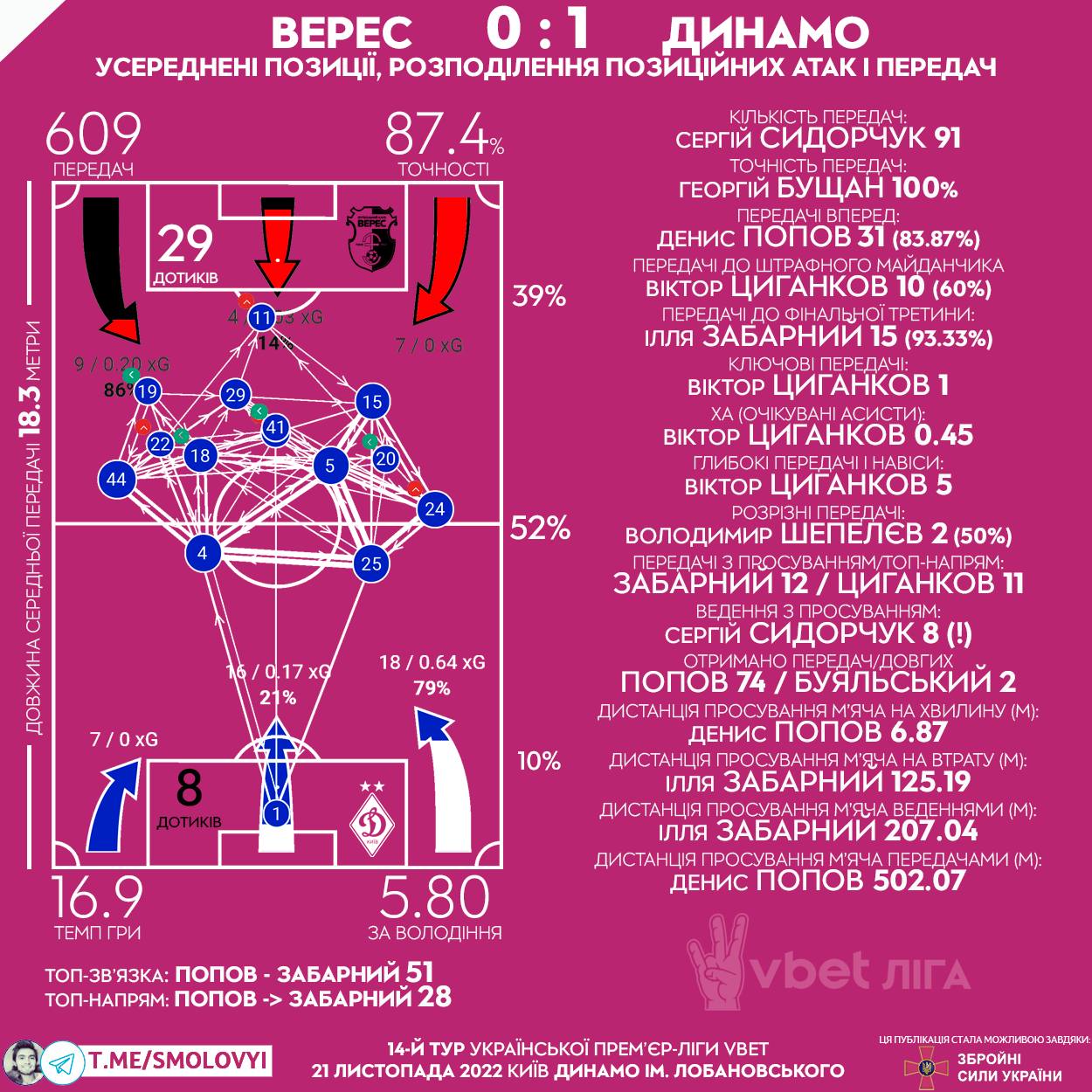 Після моменту Дахновського, коли півень за сраку дзьобнув, то підхід змінили: з 6.94 передач за тримання впали до 4.16. Темп зріс на сльози, але просто самі володіння були коротші, а тому і гостріші: Верес не мав змоги методично підлаштуватися під них. Як підсумок, то в останні 30 хвилин конверсія спроб увійти до штрафного змінилася: