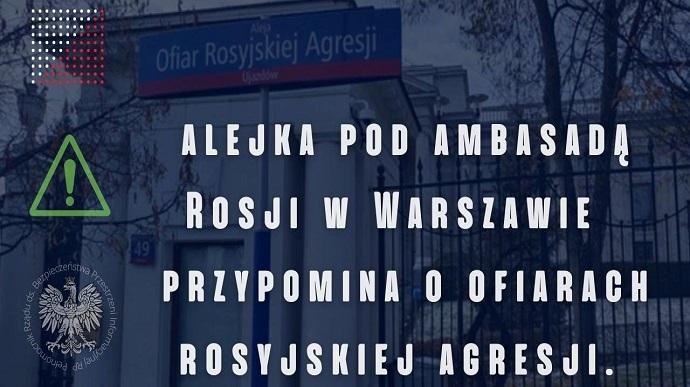 Біля посольства РФ у Варшаві з’явилась Алея жертв російської агресії