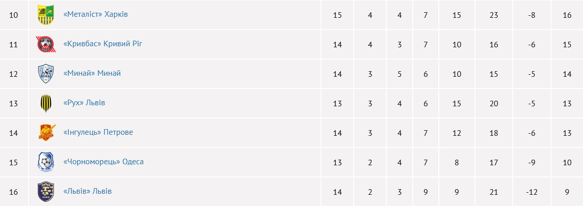 Таким чином, "Динамо" йде на зимову перерву на 3-му місці в турнірній таблиці з 30-ма очками.