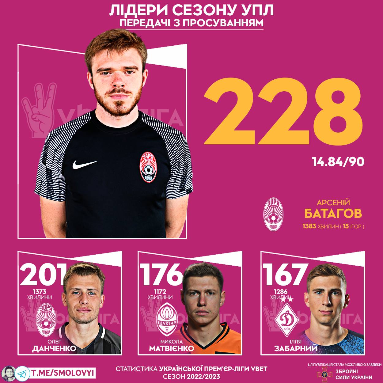 Блогер Михайло Смоловий у своєму Телеграм-каналі розповідає про лiдерів Прем'єр-ліги з передач з просуванням.