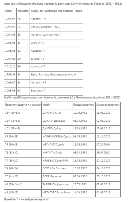 "Динамо" має найбільше перемог з рахунком 1:0 в історії чемпіонату України