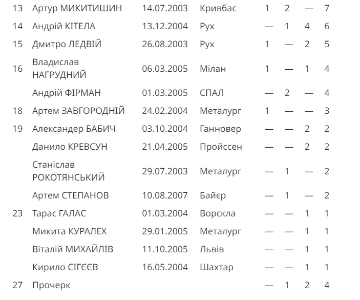 Зовсім трохи не вистачило, аби потрапити до десятки найкращих, Максиму Дячуку, Кирилу Сігєєву (по 23), Олександру Вівдичу (21), Владиславу Погорілому та Володимиру Столяру (по 20).