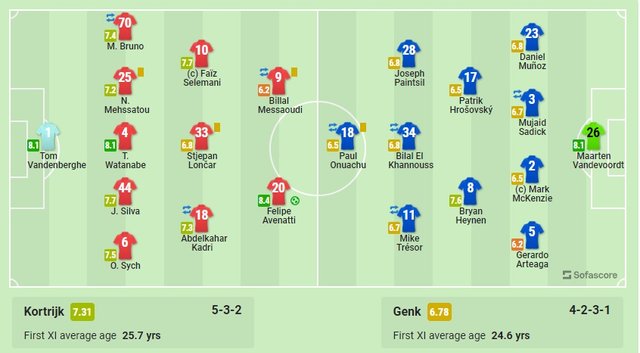 Гра правого захисника/латераля Кортрейка Олексія Сича портал Sofascore.com оцінив високою оцінкою в 7,5 бала. Це – шоста оцінка серед гравців Кортрейка. У складі суперника оцінку вищу, ніж у Сича, отримали лише два футболісти.