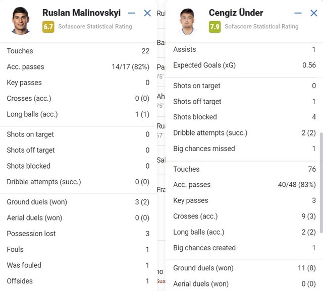 Руслан розпочав спокійно: кілька коротких передач, кілька виграних дуелей. Українець ще освоюється. Дуже мало ризику в порівнянні з Аталантою, де він в кожному епізоді шукав варіанти загострення. Сьогодні раз прострілив, але перед тим заліз в офсайд. А ще ледь не запресингував воротаря.