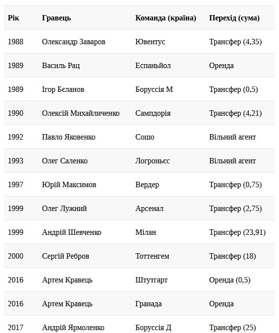 закордонні клуби гравців Динамо саме купували. Найдорожчим трансфером