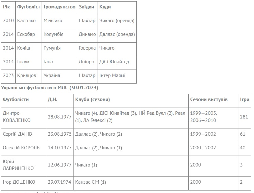 Переходи футболістів із клубів УПЛ у клуби МЛС