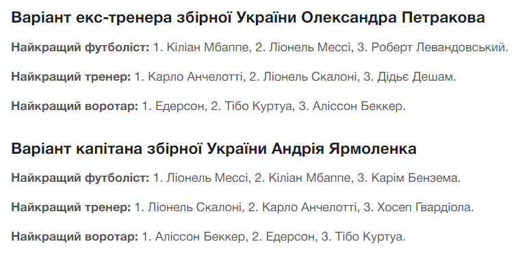УАФ не вказала, що від України на премії FIFA The Best голосував Ротань – на сайті є лише вибір Ярмоленка та Петракова, який брав участь від Вірменії