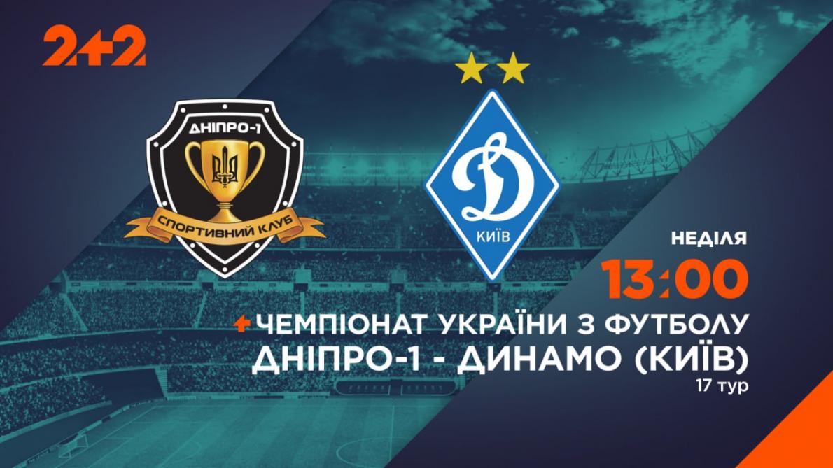 Телеканал 2+2 покаже центральний матч команд "Дніпро-1" – "Динамо"