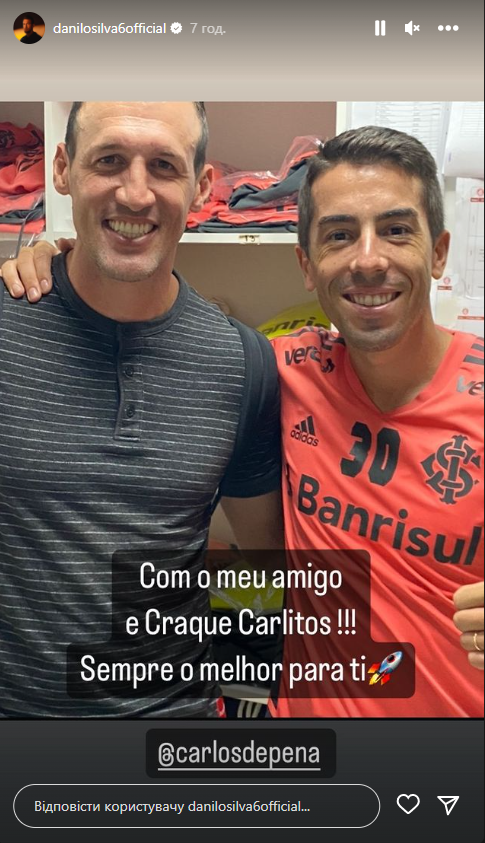 Колишній захисник "Динамо" Даніло Сілва поділився в своєму Instagram фото з хавбеком "Інтернасьонала" Карлосом Де Пеною, який теж раніше грав за київську команду.
