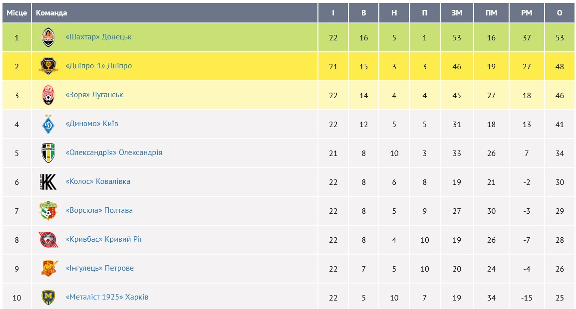 Як виглядає турнірна таблиця Прем'єр-ліги після 22-х турів