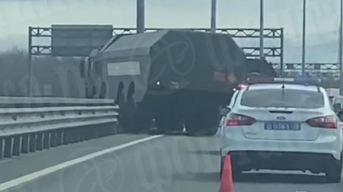Ракетний комплекс "Іскандер", який прямував на репетицію параду, протаранив відбійник на кільцевій дорозі навколо Санкт-Петербурга.