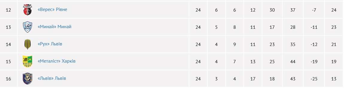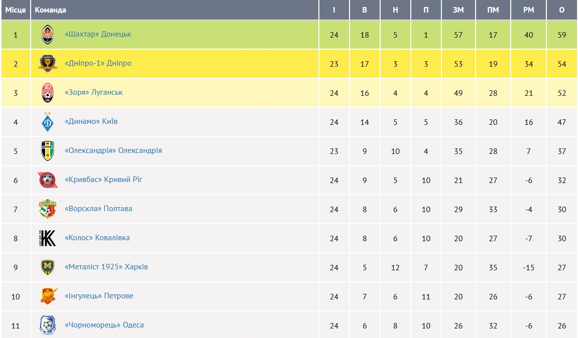 Пропонуємо до Вашої уваги турнірну таблицю Прем'єр-ліги після 24-го туру.