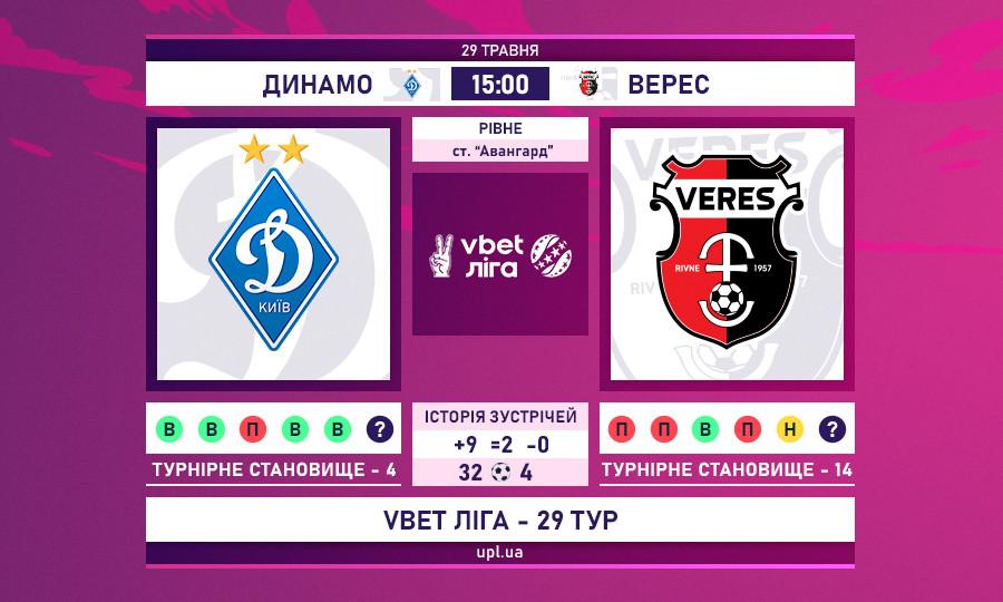 Матч 29-го туру VBET Ліги "Динамо" - "Верес": статистичне прев’ю