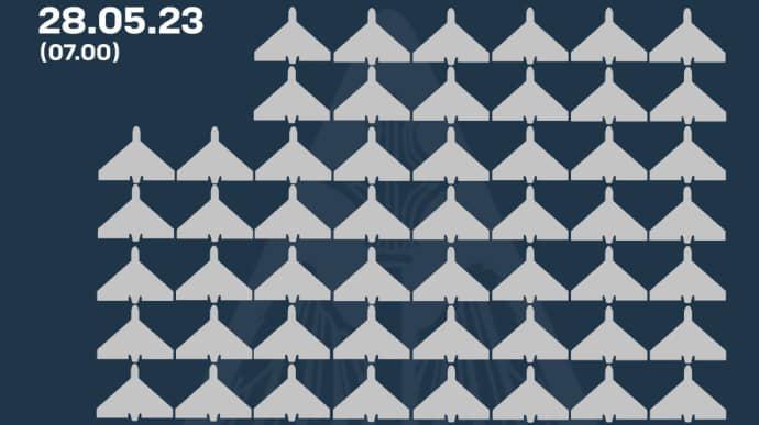 Дослівно: "В ніч на 28 травня 2023 року ворог атакував Україну іранськими ударними дронами "Shahed-136/131" з північного напрямку – Брянська область, та південного – Краснодарський край.