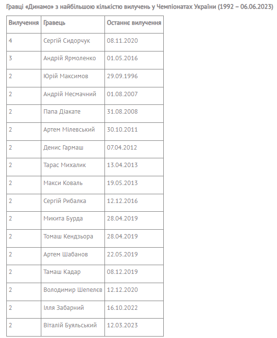 Дячук став автором 70-го вилучення гравців "Динамо" в чемпіонатах України