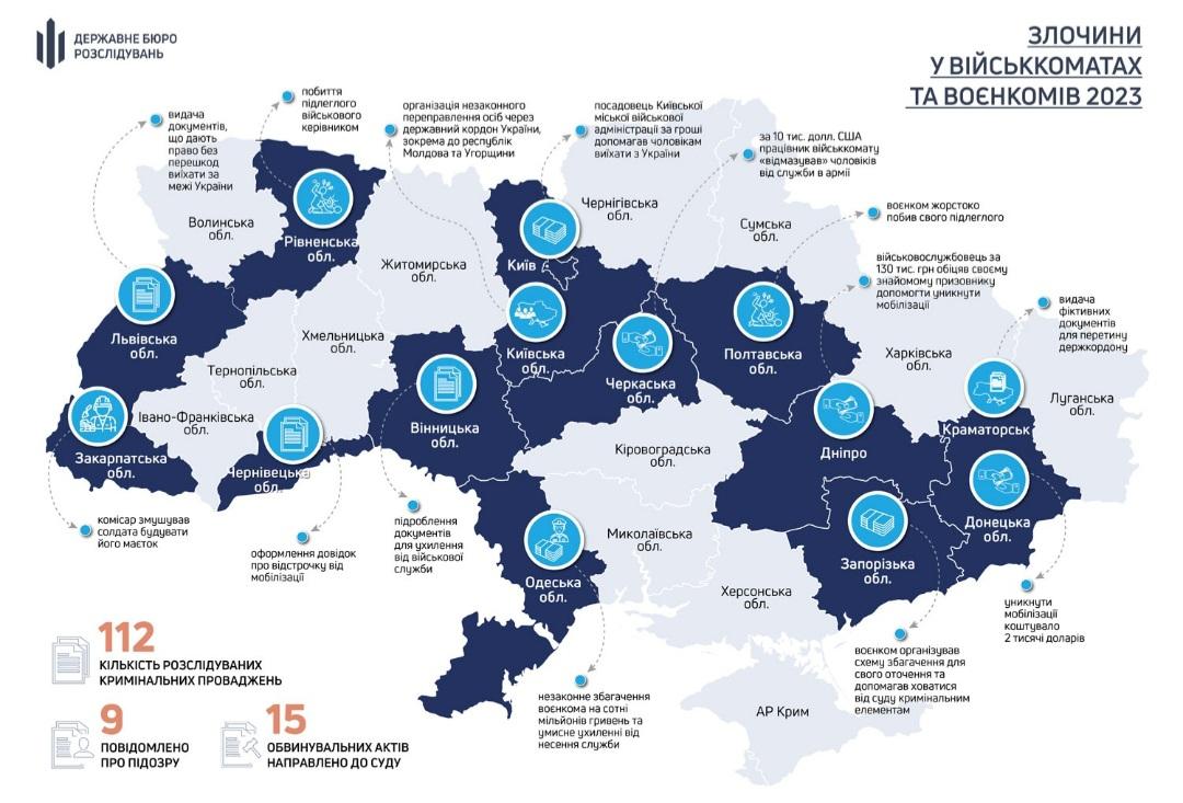 Державне бюро розслідувань з початку повномасштабного вторгнення розслідує 112 справ щодо посадовців військкоматів, 15 з них вже передали до суду.
