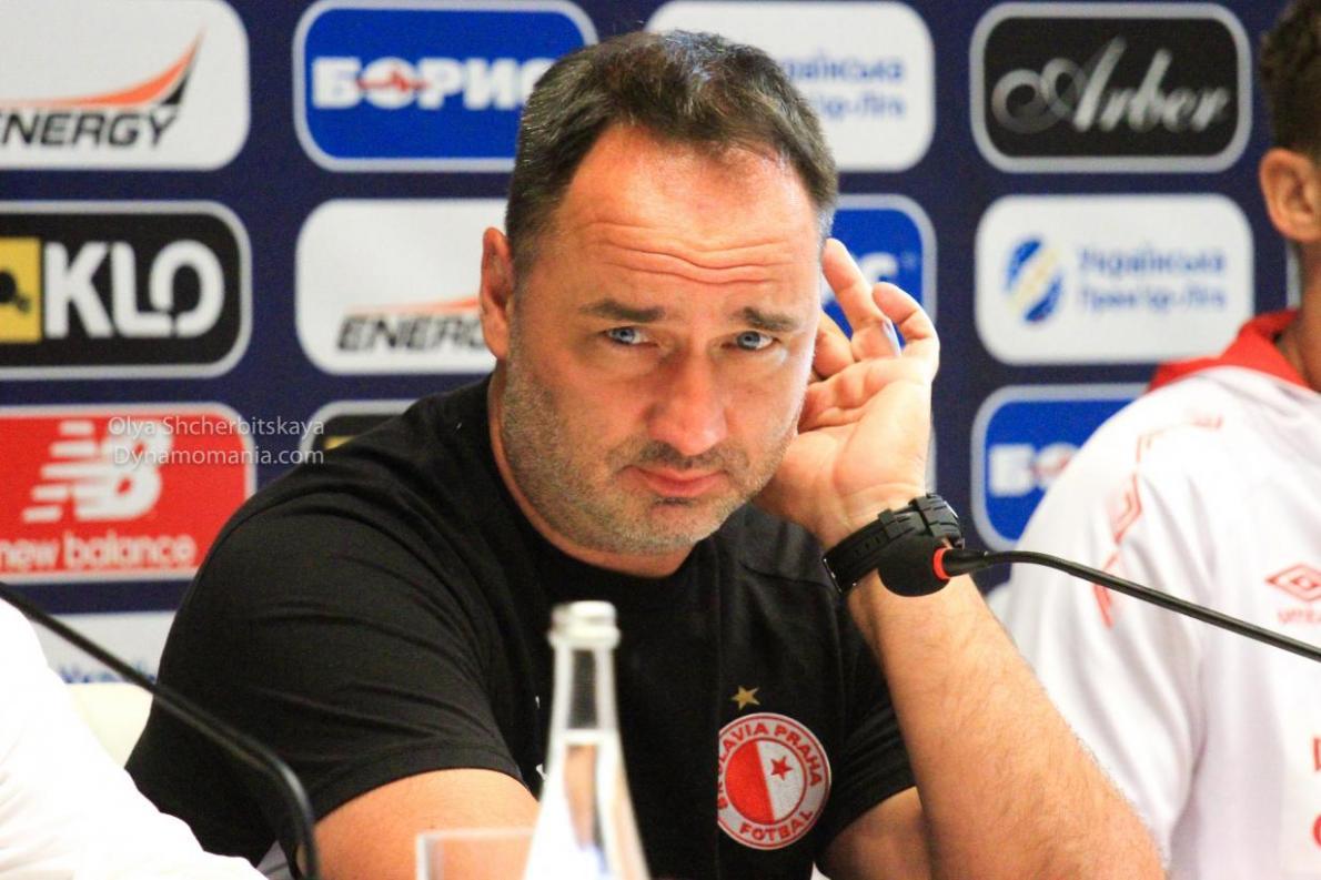 Наставник празької «Славії» Їндржих Трпішовськи взяв участь у прес-конференції у м.Кошиці (Словаччина) напередодні поєдинку команди проти Дніпра-1 в Лізі Європи.
