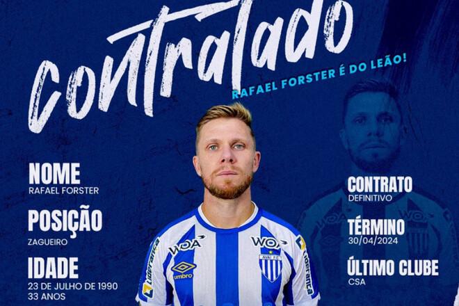 33-річний центральний захисник Рафаел Форстер, відомий в Україні за виступами у складі «Зорі», вкотре змінив команду у Бразилії.
