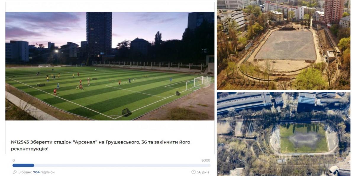 Жителі столиці вимагають від місцевої влади зберегти стадіон “Арсенал” на вулиці Грушевського, 36 та завершити його реконструкцію.