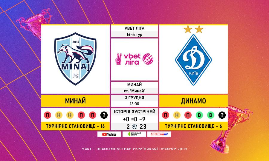 Матч 16-го туру VBET Ліги "Минай" - "Динамо": статистичне прев’ю