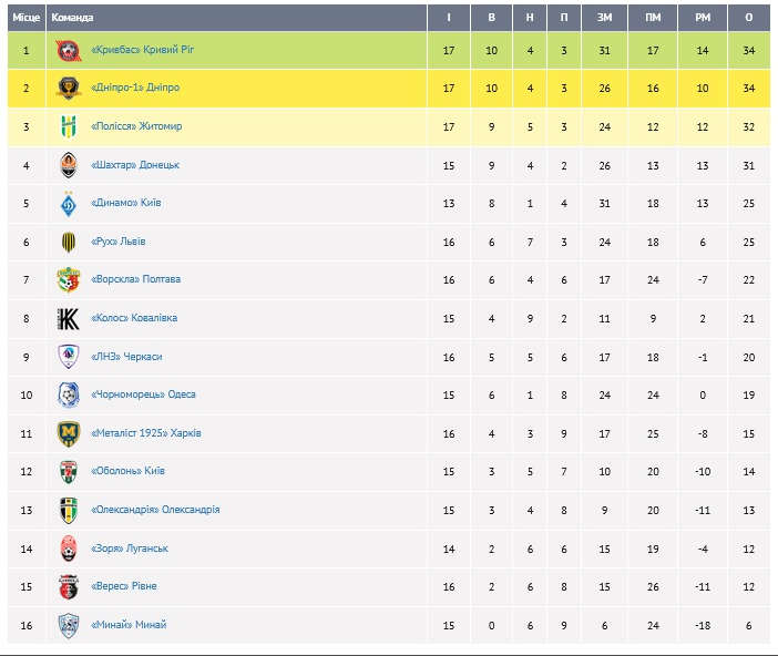 У обох команд на даний момент по 34 очки, але криворіжці вищі за дніпровців через кращу різницю забитих і пропущених м'ячів.