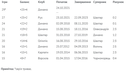 Найдовші безпрограшні домашні серії в Чемпіонатах України U-19 (2012 – 21.01.2024)