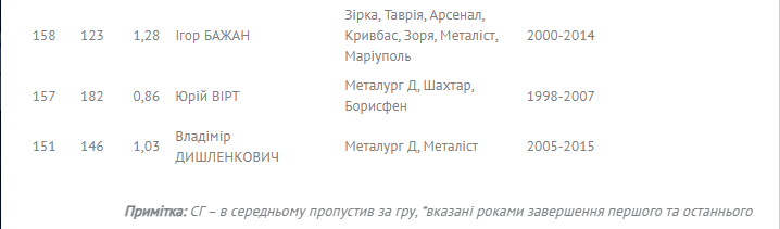 Серед учасників нинішньої VBET Ліги в складі шести клубів найбільше пропустив голів Олександр Бандура («Минай») - 286 м’ячів і перебуває за цим показником наразі на 8-му місці. У ході поточного чемпіонату збільшив кількість своїх пропущених голів і Євген Паст («Верес») – до 230-ти і вийшов на 12-е місце, «потіснивши» Дмитра Шуткова («Шахтар»).