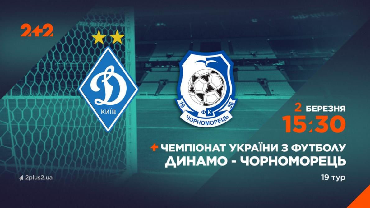Цієї суботи, 2 березня, телеканал 2+2 покаже матч «Динамо» – «Чорноморець», який відбудеться у рамках 19-го туру Української Прем’єр-ліги.