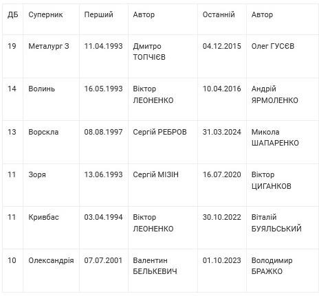 Найбільша кількість дублів Динамо одному супернику в чемпіонатах України