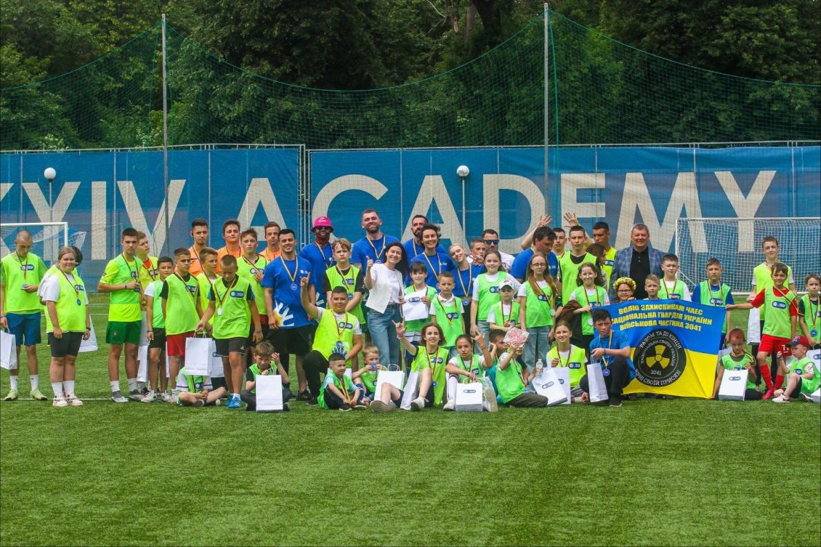 Звісно, усі присутні зробили загальне фото на пам’ять, діти отримали призи та подарунки від військових, ФК «Динамо» (Київ) та Громадської Організації United by SPORT, легендарного футболіста нашого клубу Леоніда Буряка і директора динамівської ДЮФШ Олександра Іщенка, а також смачні перекуси.