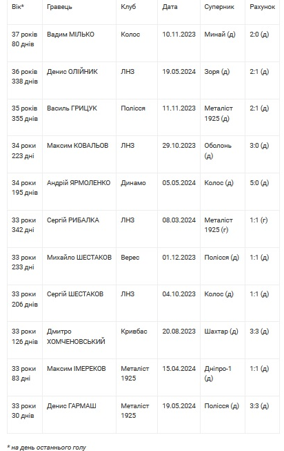 Найстарші бомбардири сезону-2023/24