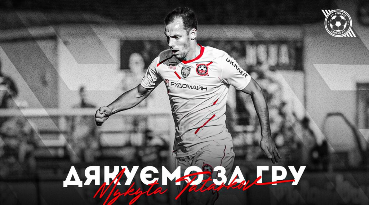 "Кривбас" повідомив, що півзахисник Микита Татарков залишив криворізький клуб. Контракт з універсальним футболістом закінчився, і сторони вирішили не продовжувати співпрацю за взаємною згодою.