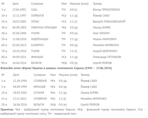 Ювілейні нічиї збірної України (1992 – 27.06.2024)