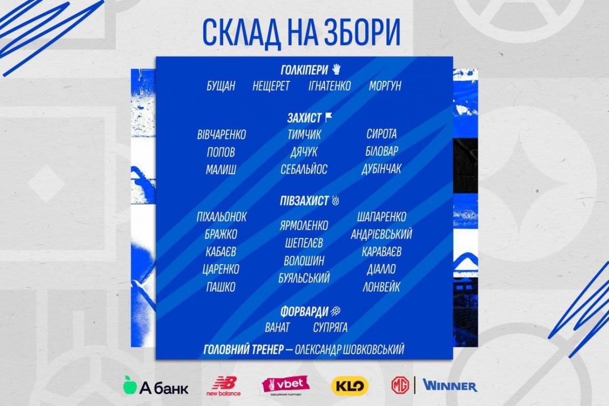 Зазначимо, що динамівці Максим Брагару, Микола Михайленко та Валентин Рубчинський у період збору будуть задіяні в Олімпійській збірній України, а Вячеслав Суркіс, Тарас Михавко, Назар Балаба, Олексій Гусєв, Андрій Маткевич та Матвій Пономаренко – в юнацькій збірній України U19.