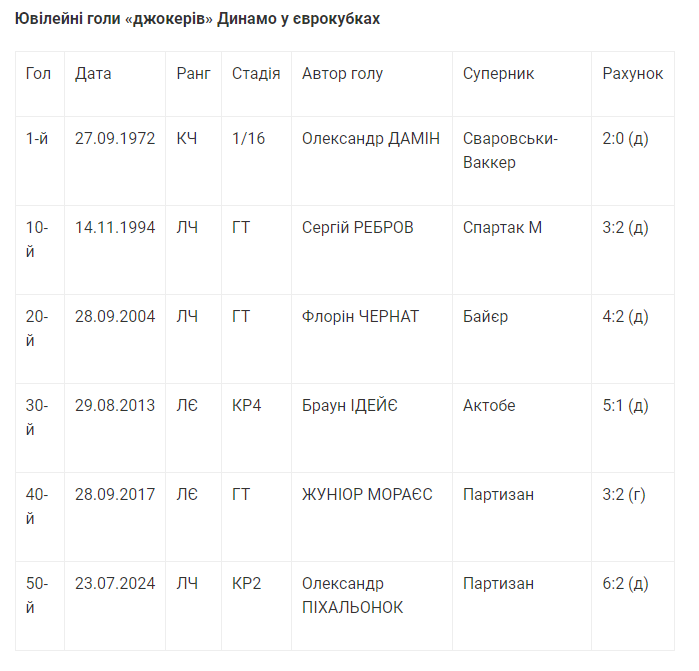Олександр Піхальонок став автором 50-го голу «джокерів» киян у єврокубках. 35 разів гравці біло-синіх, які вийшли на заміну, вражали ворота суперників удома, 14 – у гостях та 1 – на нейтральному полі. 31 м'яч динамівські «резервісти» забили у Лізі (Кубку) чемпіонів, 15 – у Лізі Європи (Кубку УЄФА), 3 – у Кубку кубків та 1 – у Лізі конференцій. Список найкращих бомбардирів-«джокерів» «Динамо» очолюють Олег Гусєв та Жуніор Мораєс – по 5 голів.