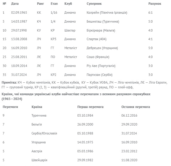 Ювілейні гостьові великі перемоги українських клубів у єврокубках (1965—2024)