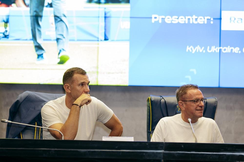 Після семінару для українських тренерів, який Ральф проводив у Будинку футболу, австрієць мав провести тренування, закріпивши теорію практикою. Наші фахівці, серед яких було чимало наставників клубів УПЛ, спостерігали за заняттями з трибун. Президент УАФ Андрій Шевченко та головний тренер української збірної Сергій Ребров теж перебували у хорошому настрої та спостерігали за роботою Рангніка.