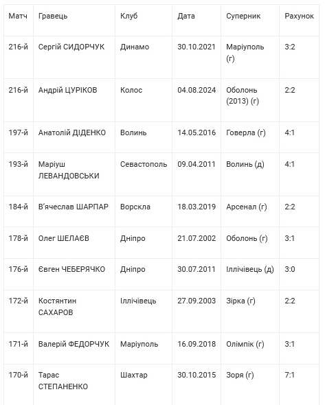 Найпізніші прем'єрні дублі гравців у чемпіонатах України
