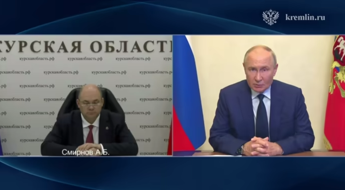 Російський лідер Володимир Путін провів відеозустріч із тимчасовим виконувачем обов'язків губернатора Курської області Олексієм Смирновим і сказав, що ситуація в регіоні вимагає від нього мужності та зібраності.