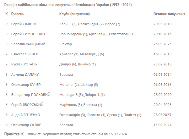 Для 33-річного півзахисника це вже шоста червона картка в УПЛ. Всі вилучення він заробив у складі «Ворскли».
