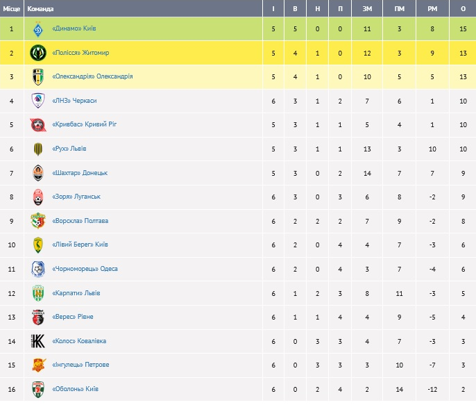 Перемога "Динамо" у відкладеному 4-му турі Прем'єр-ліги проти "Ворскли" дозволила киянам з 15-ма очками очолити турнірну таблицю.