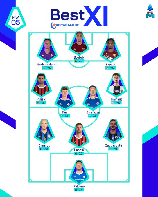 Серія А разом із газетою Fantacalcio представила символічну збірну за підсумками 5-го туру.