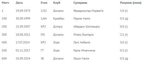 Також матч «Динамо» проти «Лаціо» став ювілейним, 600-м (!), для українських клубів за час їх виступів у Лізі Європи (раніше — Кубку УЄФА).