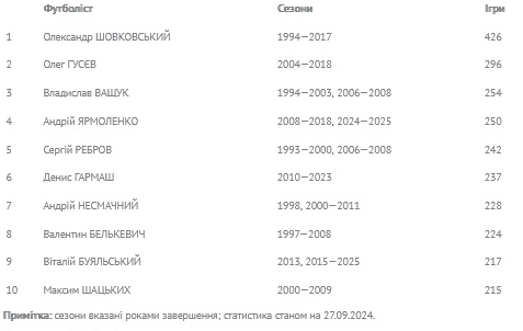 Топ-10 гвардійців «Динамо» в історії Чемпіонату України (1992—2024)