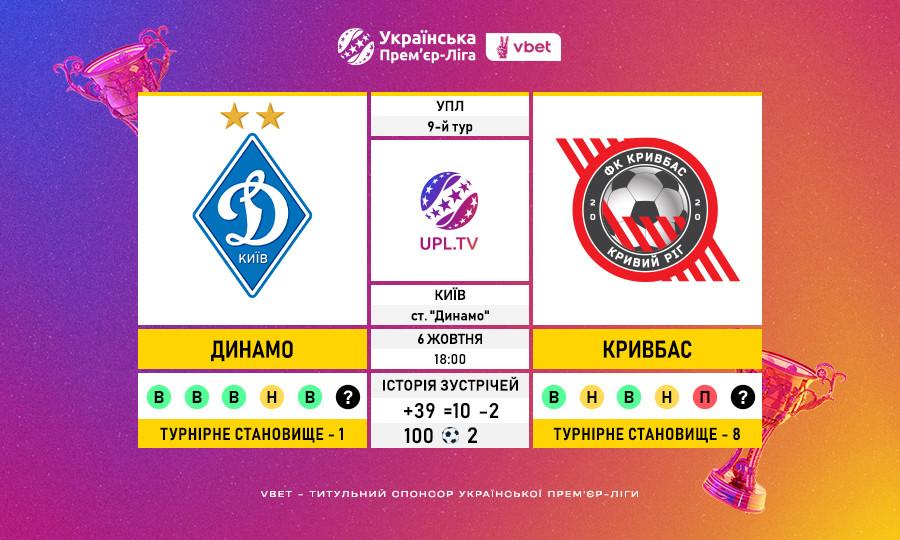 Матч 9-го туру Української Прем’єр-ліги "Динамо" - "Кривбас": статистичне прев’ю