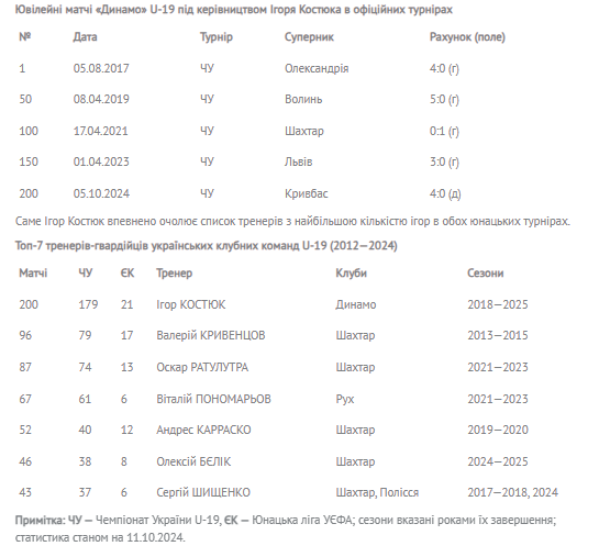 Унікальне досягнення Ігоря Костюка — 200 матчів на чолі "Динамо" U-19