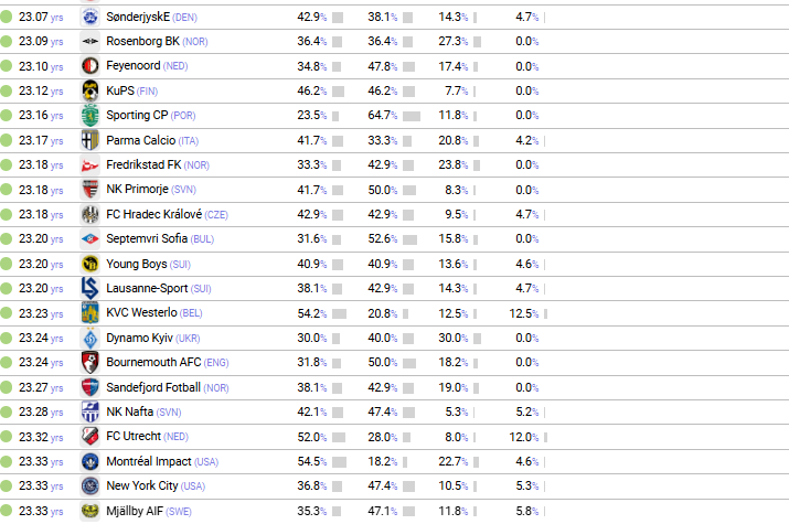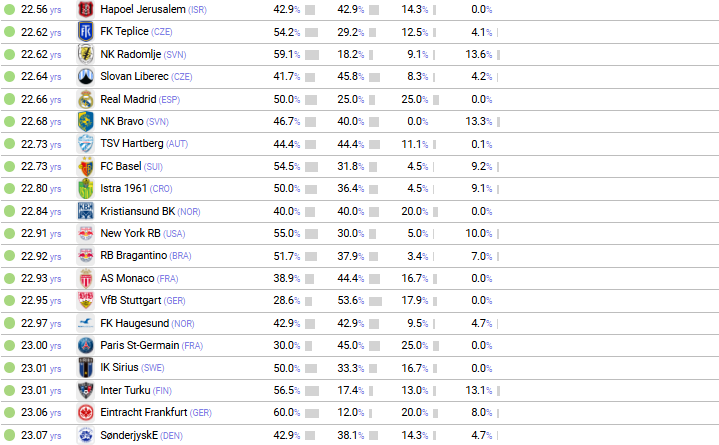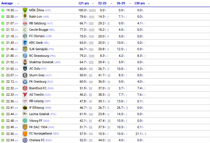 CIES Football Observatory склав рейтинг серед клубів з топ-49 ліг світу, які підписують наймолодших гравців. Ресурс порахував середній вік команд, не беручи до уваги вихованців клубної академії.